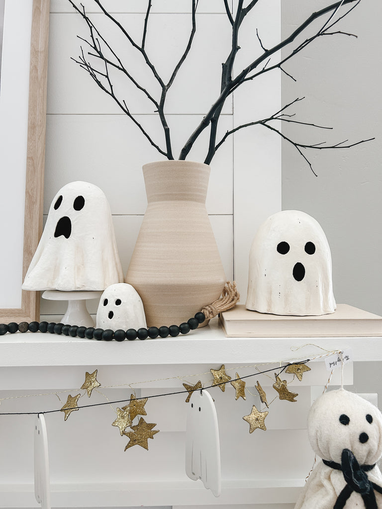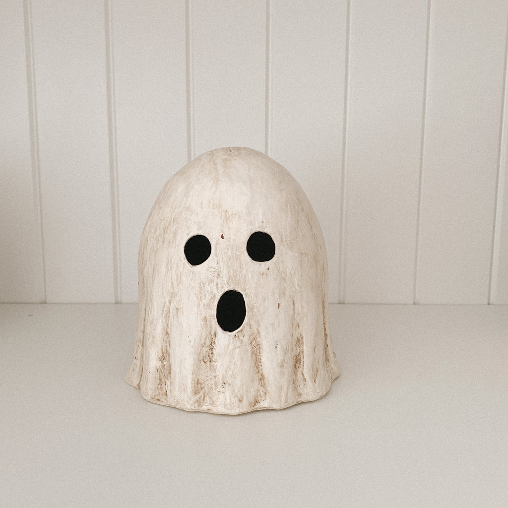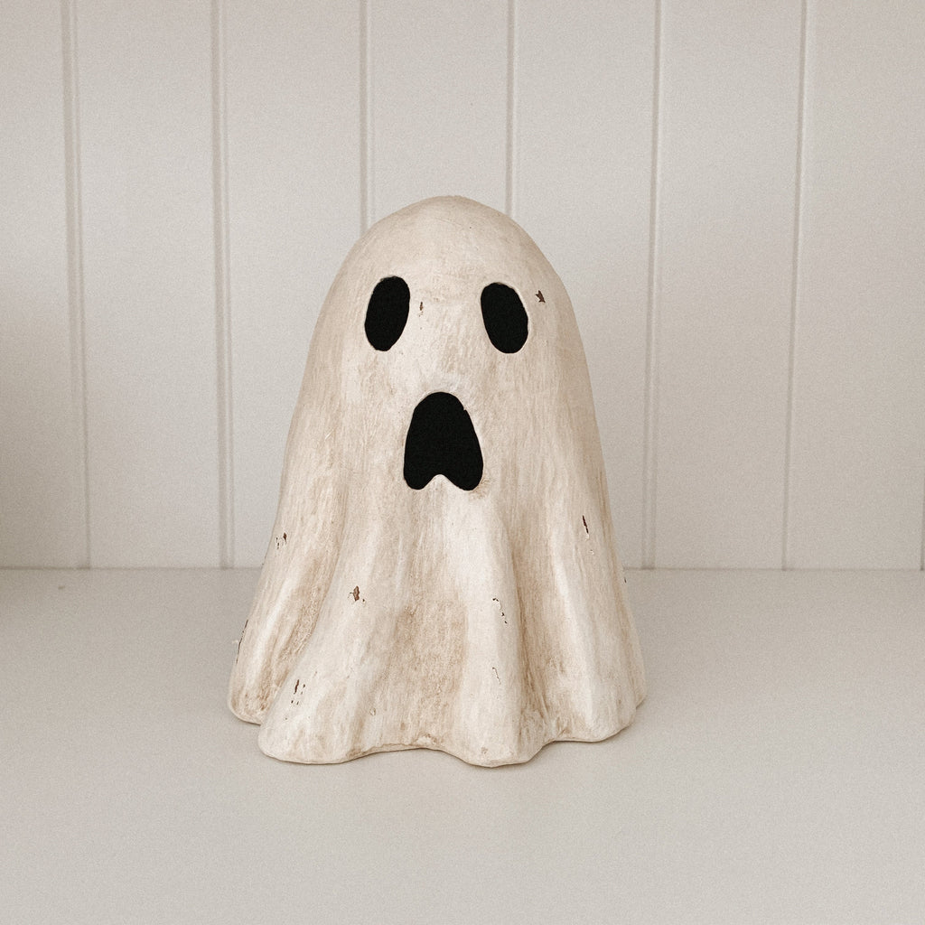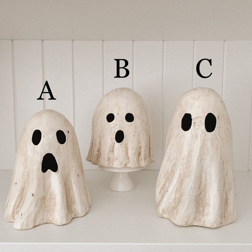 Add a little Halloween magic to your space with our Paper mâché Ghosts - select from 3 different styles. Add a small light and light up the night with these little ghoulish ghost luminaries! Luminary not included. Each ghost is hand painted paper mache. Get all 3 and save when you purchase the set!