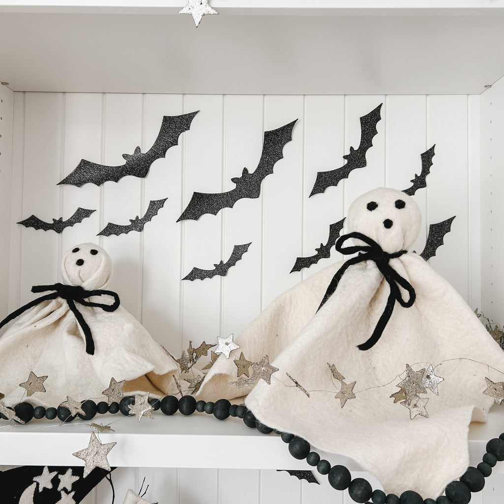 Add a dash of Halloween magic to your space with Hand Crafted Felt Ghosts. Style them to hang from your front door, front porch, ceiling, dining chandelier and more. Or have them sit on your shelves and/or mantle. These ghosts are truly timeless!