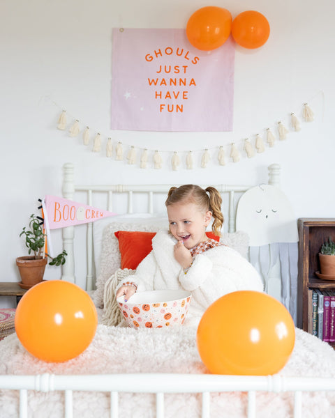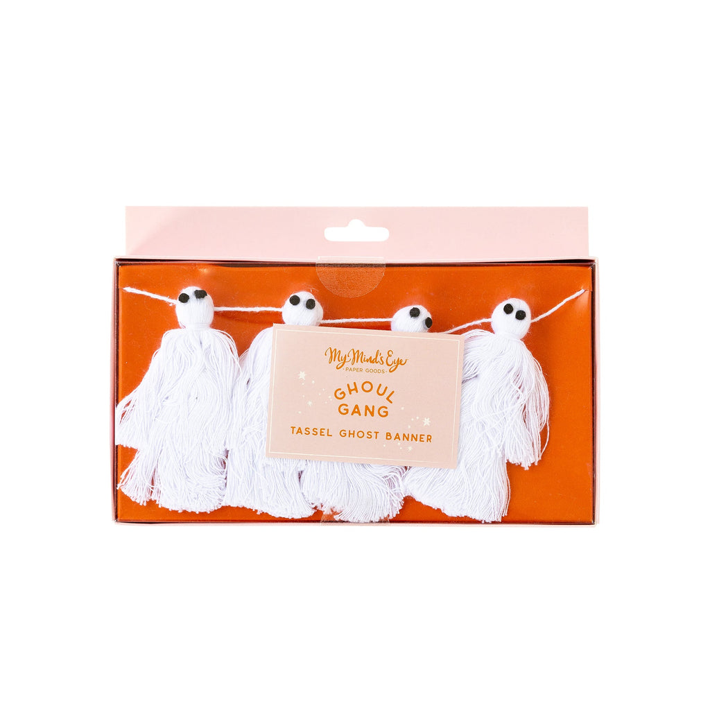 When you gather the ghouls this Halloween make sure that your space is extra spooky with this ghost tassel banner. These terrifying tassels resemble spooky ghosts and are a frightful addition to any Halloween mantel display, or haunted entry way!
