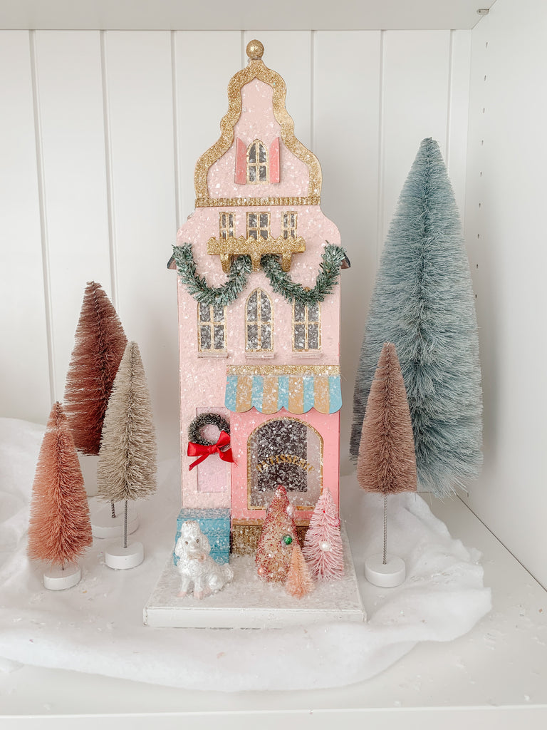 Whether you want 1 Christmas Glitter House or you're collecting a village, a Glitter House is an elegant addition to your home. Add lights through the back entrance of the Glitter House to light up your darling village.